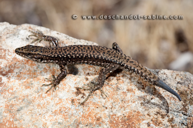 : Lézard montagnard ibérique (Iberolacerta cyreni cyreni), subadulte, Navacerrada, Espagne.