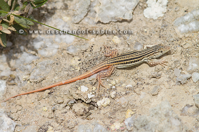 : Acanthodactyle (Acanthodactylus erythrurus), jeune, Belchite, Espagne.