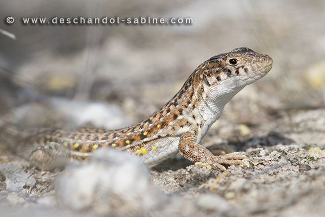 : Acanthodactyle (Acanthodactylus erythrurus), Belchite, Espagne.