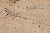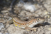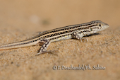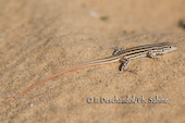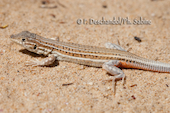 Acanthodactyle (Acanthodactylus erythrurus), juvénile, Doñana, Espagne.