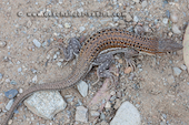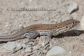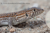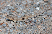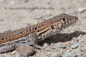 Acanthodactyle (Acanthodactylus erythrurus), femelle, Doñana, Espagne.