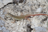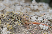 Acanthodactyle (Acanthodactylus erythrurus), juvénile, Doñana, Espagne.