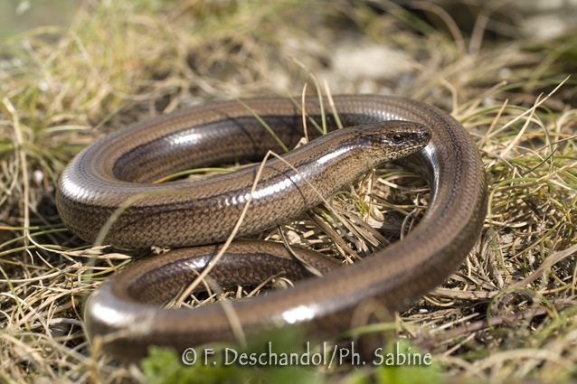 : Orvet (Anguis fragilis), femelle, Sandouville (76), France.