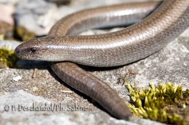 : Orvet (Anguis fragilis), femelle, Boltigen, Suisse.