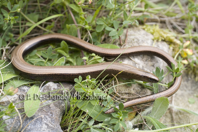 : Orvet (Anguis fragilis), femelle, Sandouville (76), France.