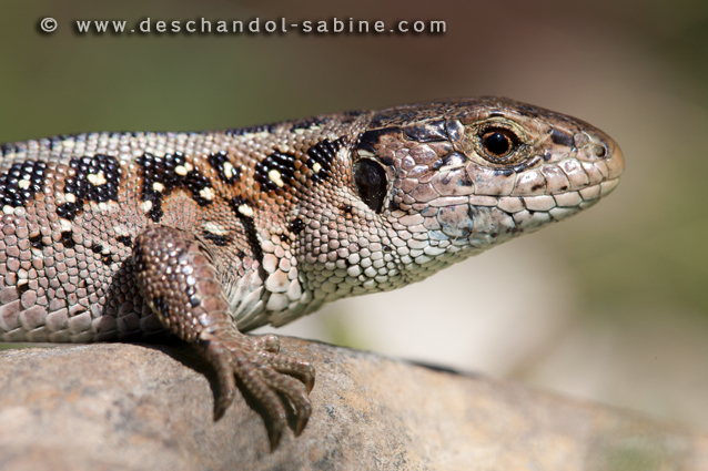 : Lézard agile (Lacerta agilis garzoni), femelle, Puymorens (66), France.