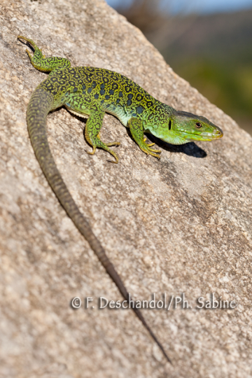 : Lézard ocellé (Timon lepidus ibericus), mâle, Fondevila, Espagne.