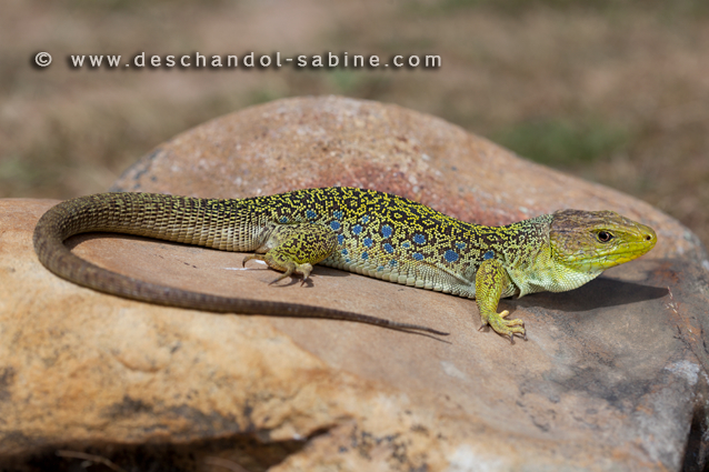 : Lézard ocellé (Timon lepidus lepidus), mâle, Burgos, Espagne.