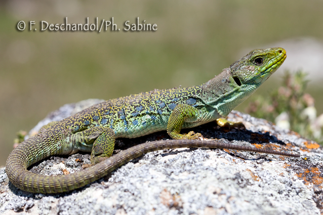 : Lézard ocellé (Timon lepidus lepidus), femelle, Vallée d'Embid, Espagne.