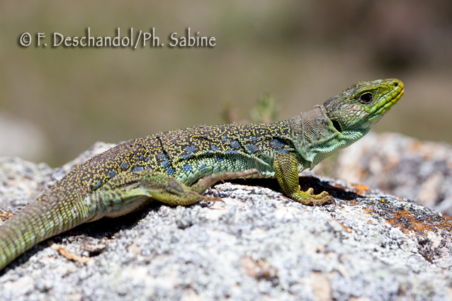 : Lézard ocellé (Timon lepidus lepidus), femelle, Vallée d'Embid, Espagne.