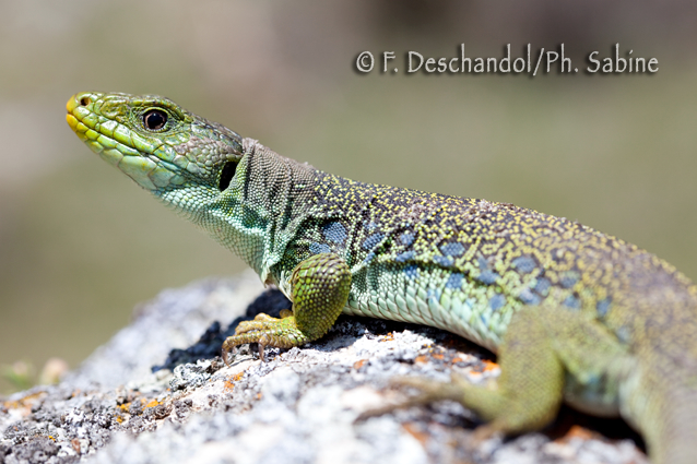: Lézard ocellé (Timon lepidus lepidus), femelle, Vallée d'Embid, Espagne.