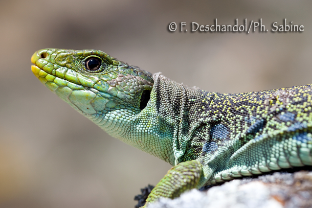 : Lézard ocellé (Timon lepidus lepidus), femelle, Vallée d'Embid, Espagne.