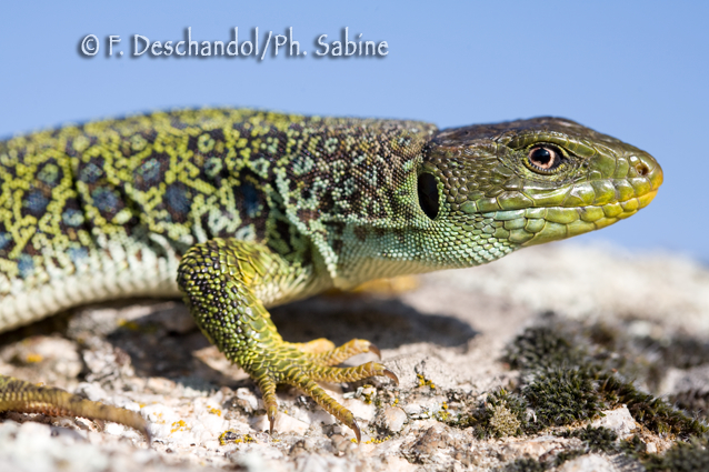 : Lézard ocellé (Timon lepidus lepidus), femelle, Sogo, Espagne.