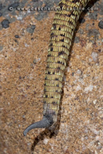 : Lézard ocellé (Timon lepidus lepidus), régénération de la queue, Burgos, Espagne.