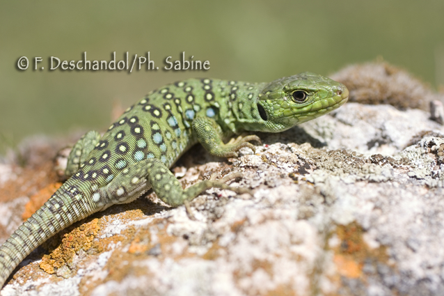 : Lézard ocellé (Timon lepidus lepidus), juvénile, Vallée d'Embid, Espagne.