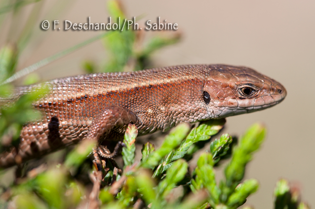 : Lézard vivipare (Zootoca vivipara louislantzi), femelle, Forêt d'Iraty (64), France.