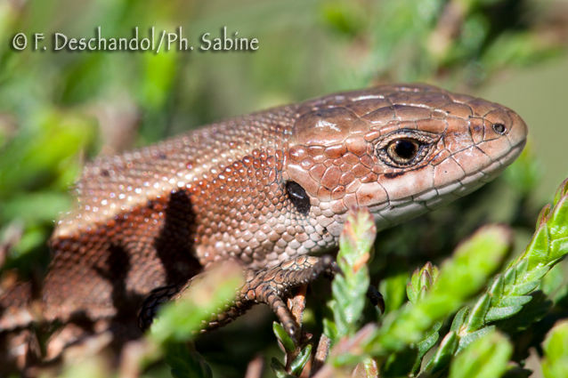 : Lézard vivipare (Zootoca vivipara louislantzi), femelle, Forêt d'Iraty (64), France.