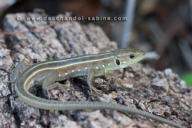 : Lézard à trois raies (Lacerta trilineata major), juvénile, Budva, Monténégro.