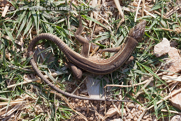 : Lézard à trois raies (Lacerta trilineata major), juvénile, Pag, Croatie.
