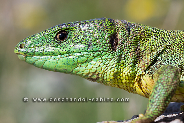 : Lézard à trois raies (Lacerta trilineata major), Radosinovci, Croatie.