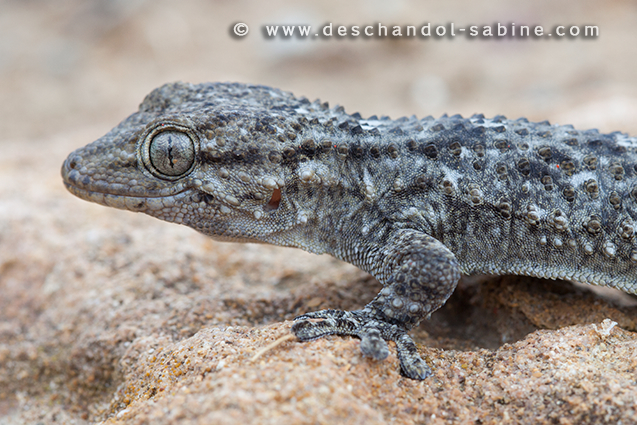 : Tarente de Maurétanie (Tarentola mauritanica), Cala Tirant, Minorque, Baléares, Espagne.