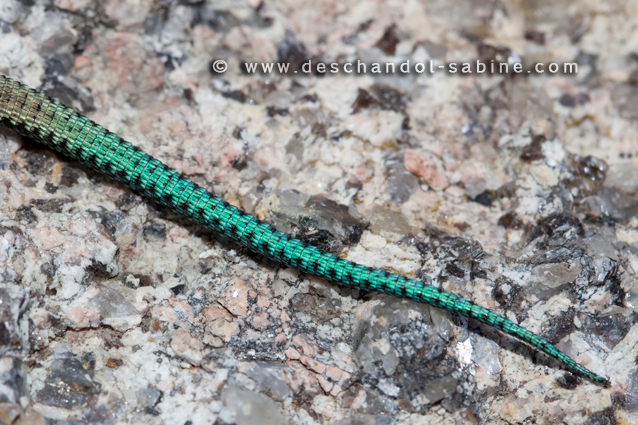 : Lézard montagnard ibérique (Iberolacerta monticola monticola), juvénile, détail de la queue, Serra da Estrela, Portugal.
