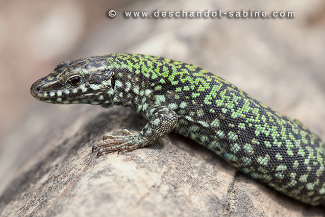 : Lézard des murailles (Podarcis muralis nigriventris), femelle, Rapallo, Italie.