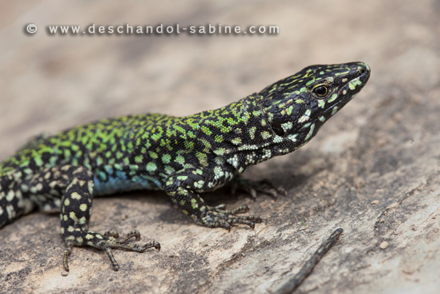 : Lézard des murailles (Podarcis muralis nigriventris), mâle, Rapallo, Italie.