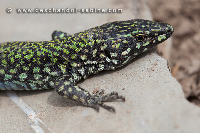 : Lézard des murailles (Podarcis muralis nigriventris), mâle, Rapallo, Italie.