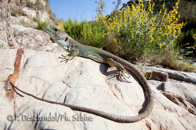 : Lézard ocellé (Timon nevadensis), mâle, Lorca, Espagne.