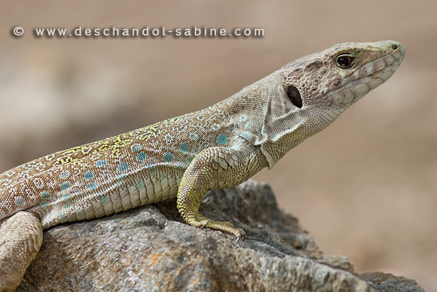 : Lézard ocellé (Timon nevadensis), femelle, Lorca, Espagne.