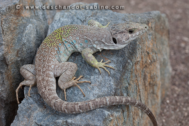 : Lézard ocellé (Timon nevadensis), femelle, Lorca, Espagne.
