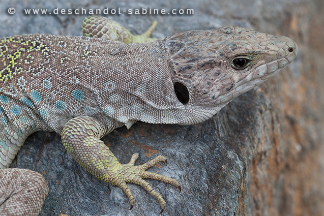 : Lézard ocellé (Timon nevadensis), femelle, Lorca, Espagne.