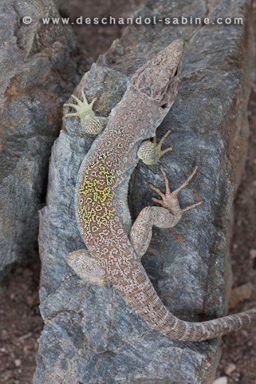 : Lézard ocellé (Timon nevadensis), femelle, Lorca, Espagne.