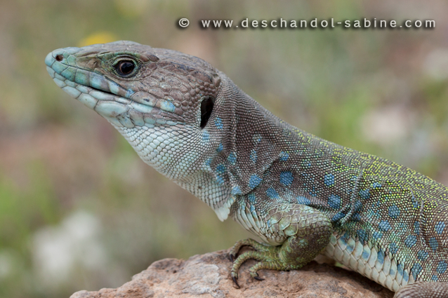 : Lézard ocellé (Timon nevadensis), mâle, Lorca, Espagne.