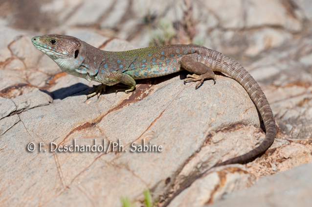 : Lézard ocellé (Timon nevadensis), mâle, Lorca, Espagne.