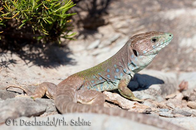 : Lézard ocellé (Timon nevadensis), mâle, Lorca, Espagne.