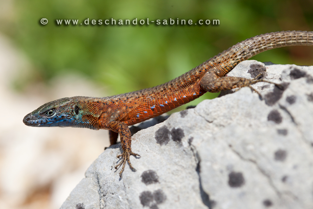: Algyroïde à points noirs (Algyroides nigropunctatus), mâle, Vižinada, Croatie.
