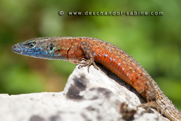 : Algyroïde à points noirs (Algyroides nigropunctatus), mâle, Vižinada, Croatie.