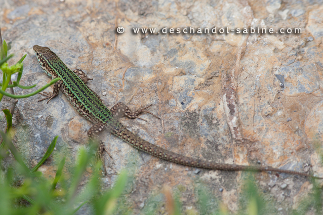 : Lézard des Pityuses (Lacerta pityusensis pityusensis), St Juan de Gaztelugatxe, Espagne.