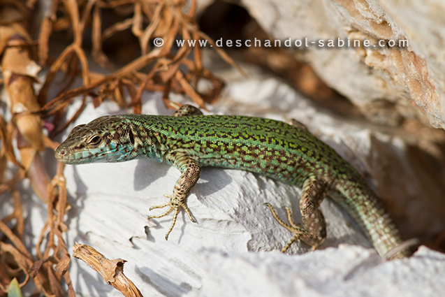 : Lézard des Pityuses (Lacerta pityusensis pityusensis), Ses Illetes, Mallorque, Baléares, Espagne.