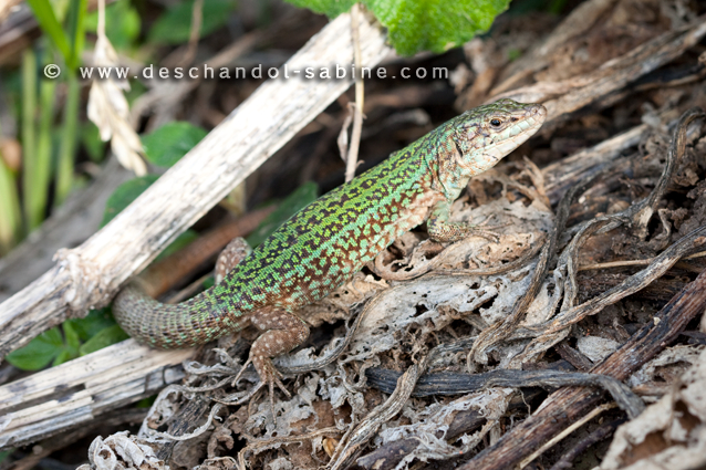 : Lézard des Pityuses (Lacerta pityusensis pityusensis), St Juan de Gaztelugatxe, Espagne.