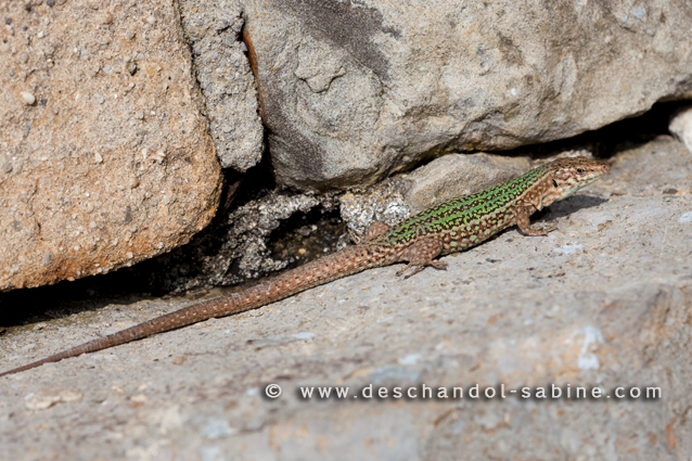 : Lézard des Pityuses (Lacerta pityusensis pityusensis), St Juan de Gaztelugatxe, Espagne.