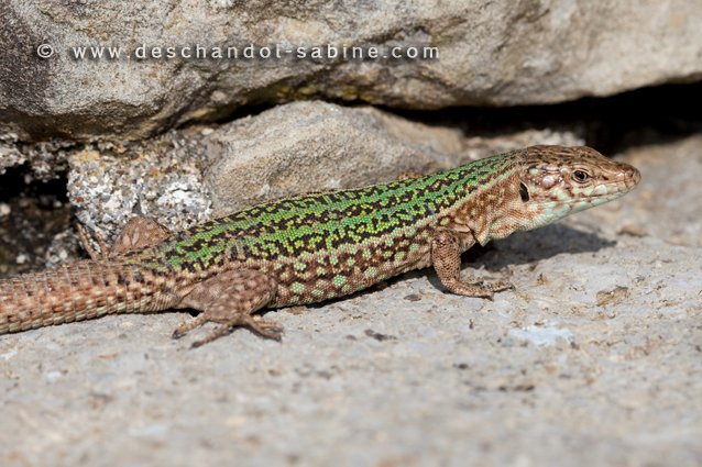 : Lézard des Pityuses (Lacerta pityusensis pityusensis), St Juan de Gaztelugatxe, Espagne.