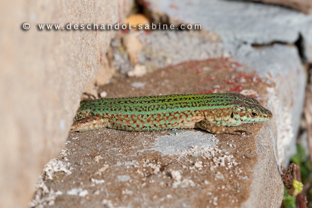 : Lézard des Pityuses (Lacerta pityusensis pityusensis), St Juan de Gaztelugatxe, Espagne.
