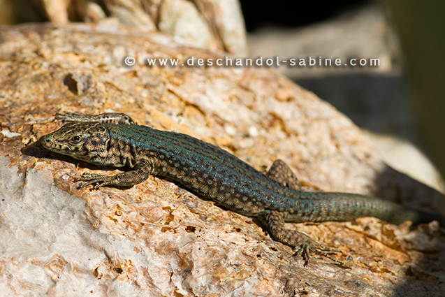 : (Podarcis lilfordi porrosicola), Illa d'Es Porros, Minorque, Baléares, Espagne.