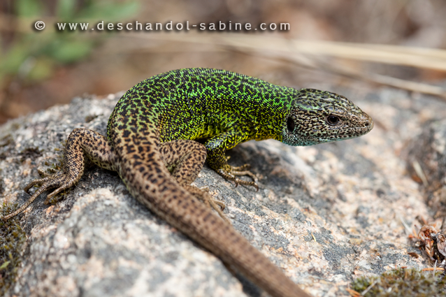 : Lézard de Schreiber (Lacerta schreiberi), mâle, Peneda-Gerês, Portugal.