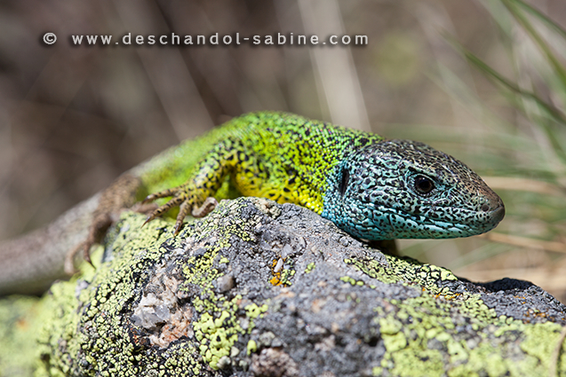 : Lézard de Schreiber (Lacerta schreiberi), mâle, Sierra de Gredos, Espagne.