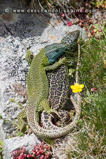 : Lézards de Schreiber (Lacerta schreiberi), couple, Sierra de Gredos, Espagne.
