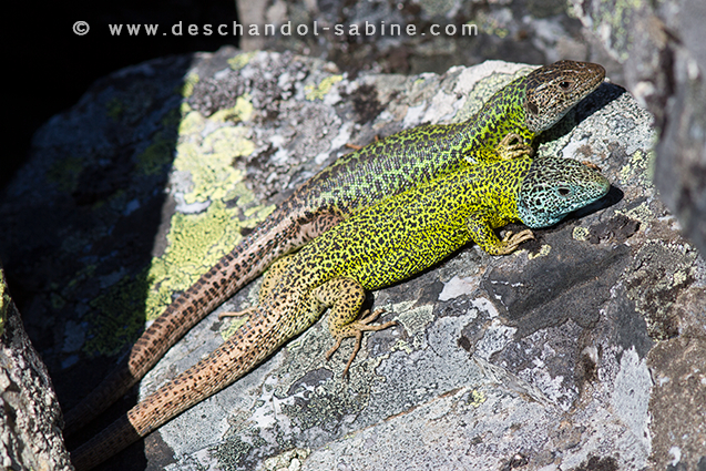 : Lézards de Schreiber (Lacerta schreiberi), couple, Peña de Francia, Espagne.